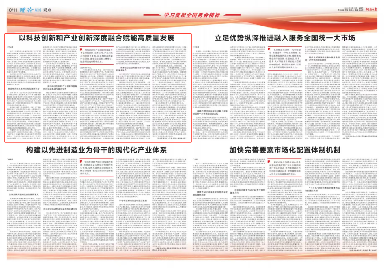 《河南日报》刊发李成伟代表文章:以科技创新和产业创新深度融合赋能高质量发展