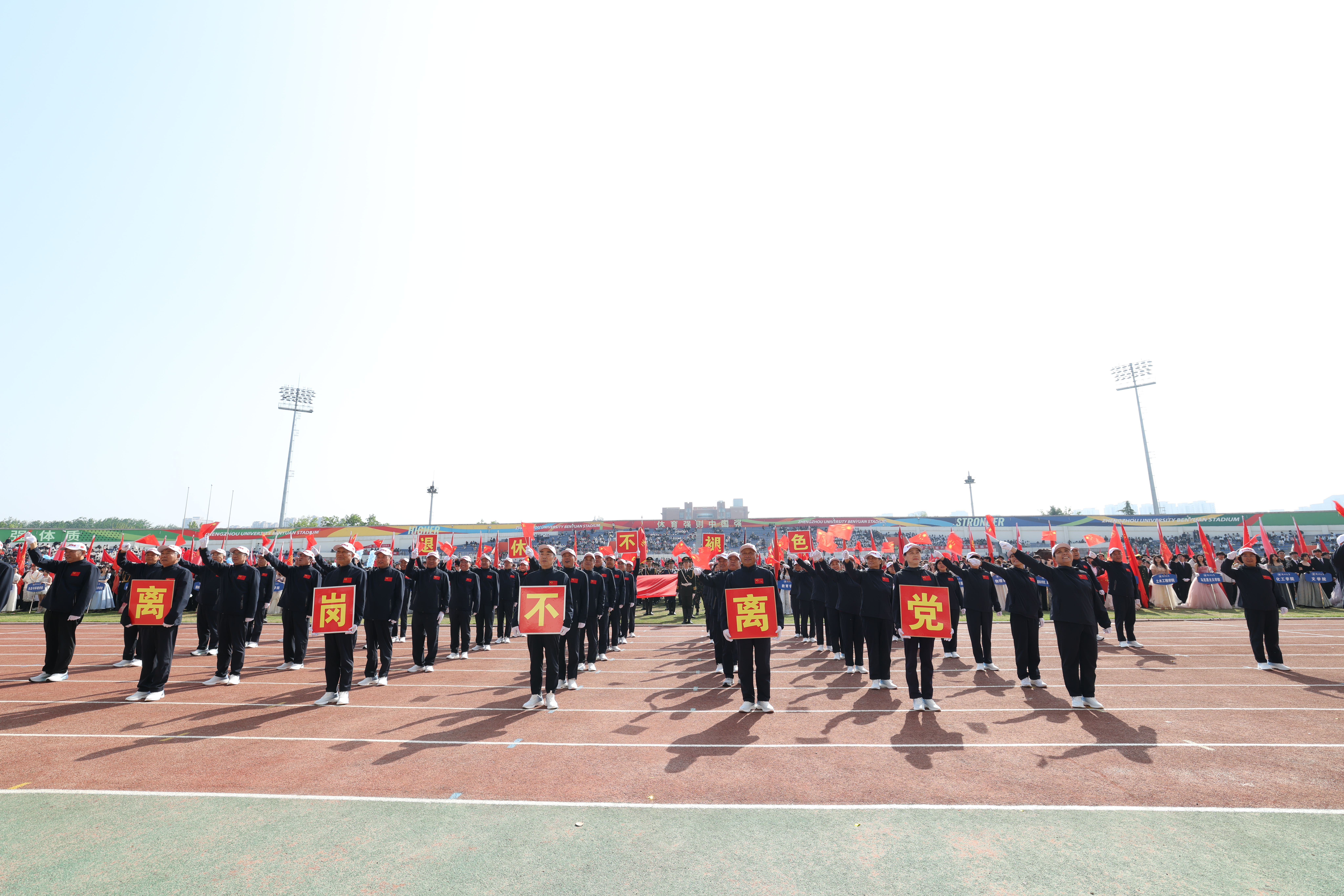 开幕式上,伴随着激昂的运动员进行曲,“银龄教职工”方队迈着稳健的步伐最后登场,全场顿时响起雷鸣般的掌声与欢呼声。方队成员身着统一服装,手持国旗,身姿挺拔,精神矍铄。行至主席台前,方队高擎“离岗不离党,退休不褪色”的标语,齐声高呼“爱我郑大、振兴中华”,铿锵有力的口号响彻全场。