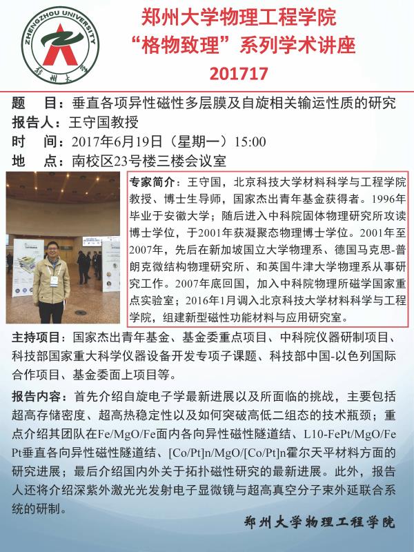 《垂直各项异性磁性多层膜及自旋相关输运性质的研究》学术报告