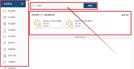 可根据流程名称搜索,也可按类别搜索具体服务流程。
