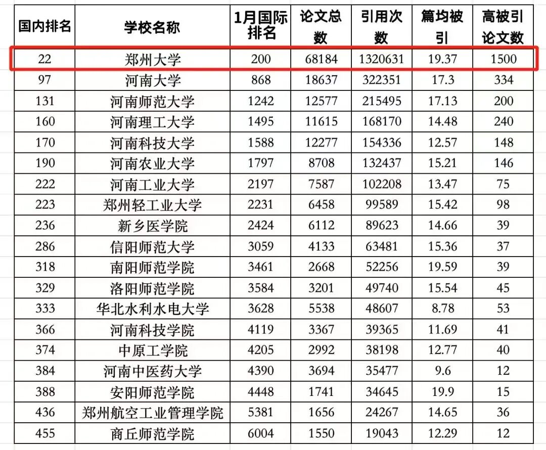 2.郑州大学坚持学科引领ESI最新排名国内高校第22位